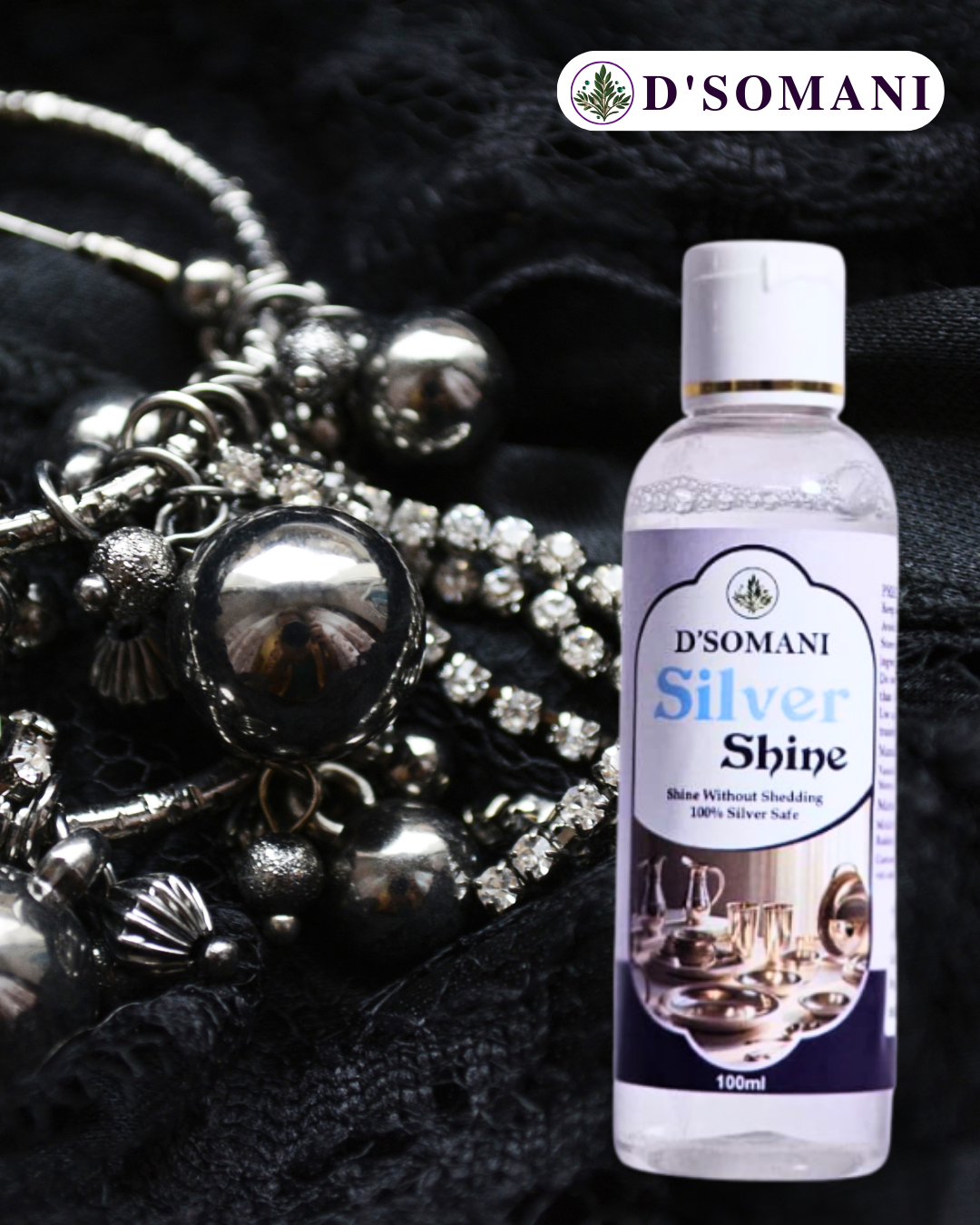 Over time, silver jewellery loses its shine due to oxidation and exposure to air. D’Somani Silver Shine is a premium silver jewellery cleaner and tarnish remover that works instantly to restore brilliance without damaging the metal.